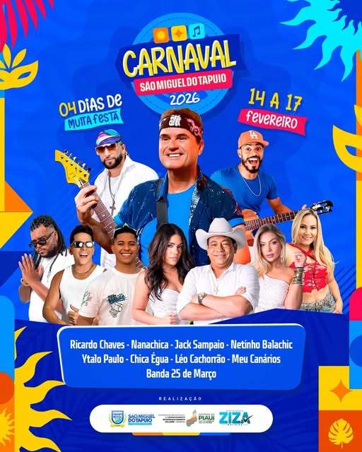 Preparem-se para 4 dias de muita animação, música e tradição. De 14 a 17 de fevereiro com grandes atrações musicais: Ricardo Chaves, Léo Cachorrão, Chica Égua, Nanachica e muito mais.